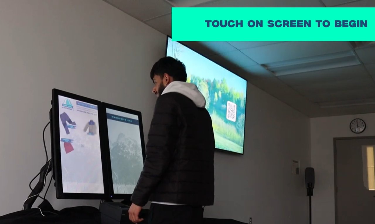 The final deliverable is a complete retail installation demo video showcasing interactive product experiences. It effectively demonstrates gesture-based controls, dual-screen catalogue functionality, and QR-enabled promotional content for real-world retail environments.