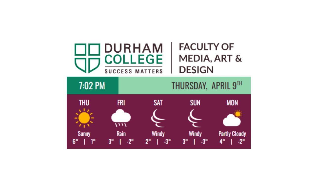 The final deliverable is a complete digital signage system capable of displaying dynamic, real-time content across multiple panels. It integrates backend-driven data with a visually engaging frontend, making it suitable for public spaces such as campuses, offices, and retail environments.